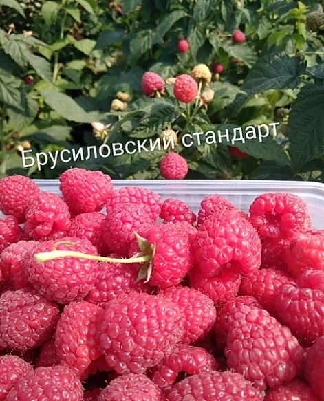 Малина Брусиловский стандарт — это новый сорт высокоурожайной ремонтантной малины. Куст невысокий (1,5), размножается отлично, плоды крупные до 7-9г. Транспортабельность плодов достаточно высокая. Созревание урожая начинается в конце июля и длится до октября. При правильном уходе и достаточном удобрении, сорт дает щедрый и качественный урожай до 8!!!кг. Устойчивость к болезням и вредителям хорошая. Засухоустойчив.
